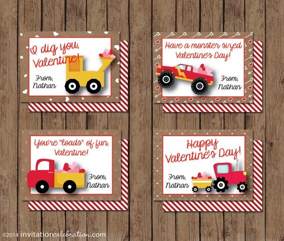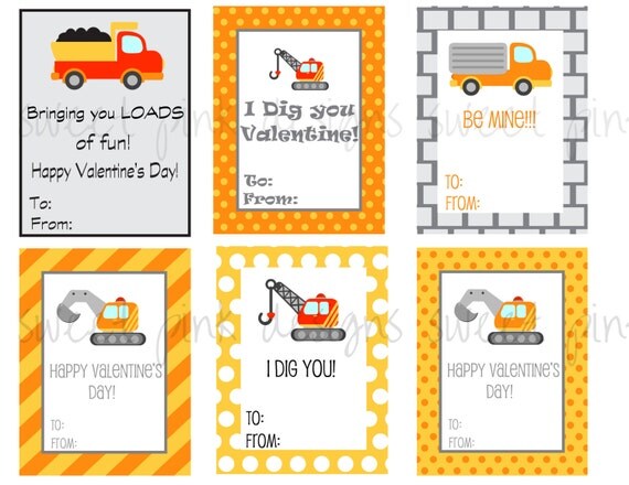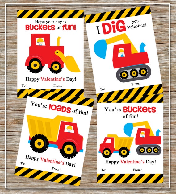 Construction vehicles valentines day cards, perfect for your child to give friends and/or classmates!